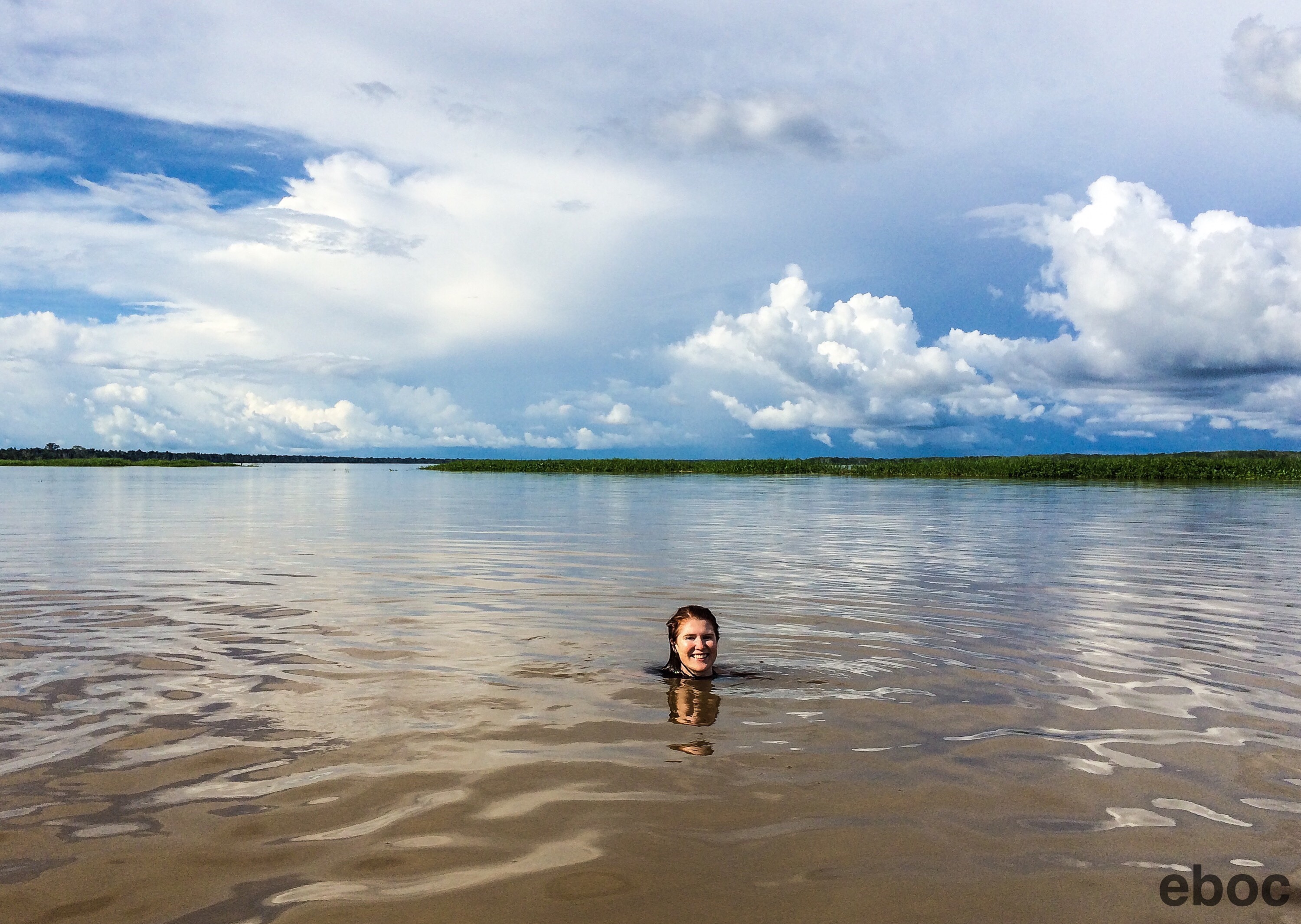 I spent my first afternoon in the jungle swimming in the Amazon River while pink and grey dolphins jumped in the water around me.